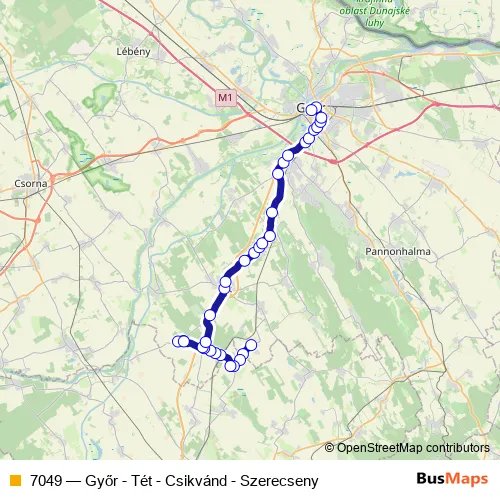 Bus 7049 - Győr - Tét - Csikvánd - Szerecseny: Full Schedule in Tet