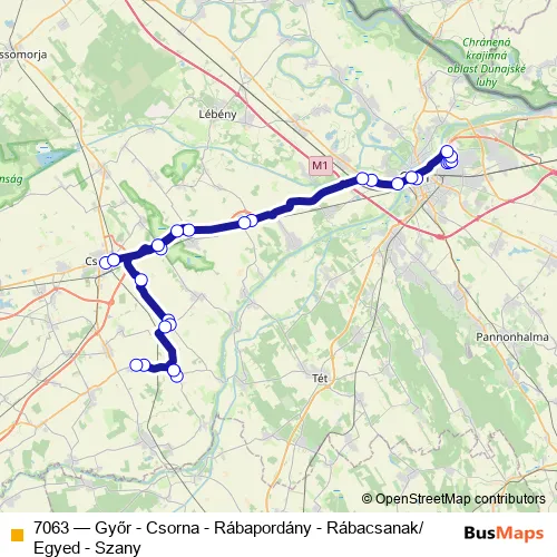 The first stop of the 7063 bus route is Győr, Audi-gyár, 4-es porta and the last stop is Rábacsanak, községháza. 7063 (Győr - Csorna - Rábapordány - Rábacsanak/Egyed - Szany) is operational during everyday.