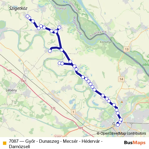 Bus 7087 - Győr - Dunaszeg - Mecsér - Hédervár - Darnózseli Schedule in Gyor
