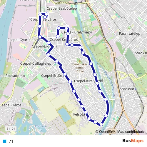 The first stop of the 71 bus route is Görögkatolikus templom and the last stop is Csepel, Szent Imre tér. 71 is operational during everyday.