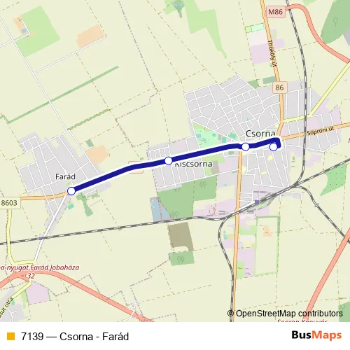 Click here to view the nearest 7139 - Csorna - Farád bus stop.