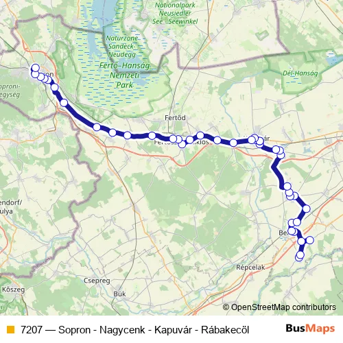 Services on the 7207 - Sopron - Nagycenk - Kapuvár - Rábakecöl bus stop at 23:33 on Monday, Tuesday, Wednesday, Thursday, Friday, Saturday, Sunday.