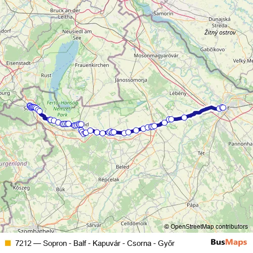 The first stop of the 7212 bus route is Sopron, autóbusz-állomás and the last stop is Kapuvár, autóbusz-állomás. 7212 (Sopron - Balf - Kapuvár - Csorna - Győr) is operational during on weekdays.