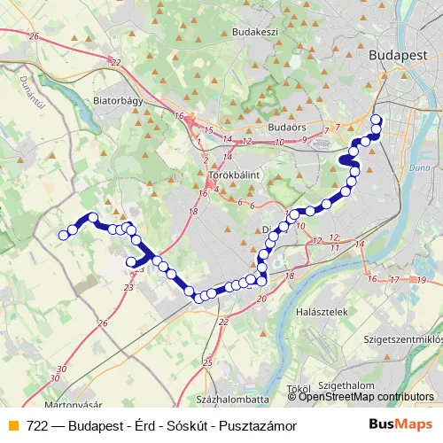 Bus 722 - Budapest - Érd - Sóskút - Pusztazámor: Full Schedule in Erd