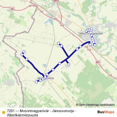 Bus 7281 - Mosonmagyaróvár - Jánossomorja - Albertkázmérpuszta in Mosonmagyarovar: Stops & Timetable