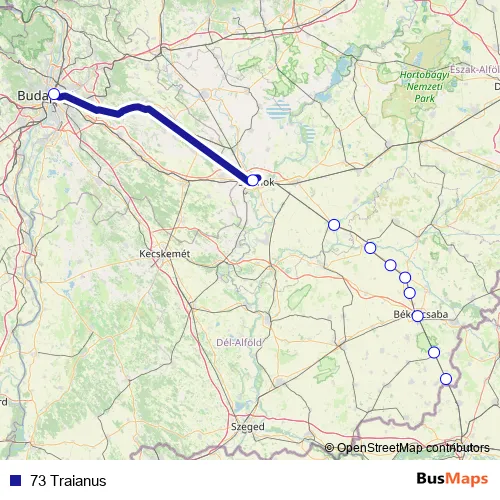 The first stop of the 73 Traianus rail route is Budapest-Keleti and the last stop is Lőkösháza. 73 Traianus is operational during everyday.