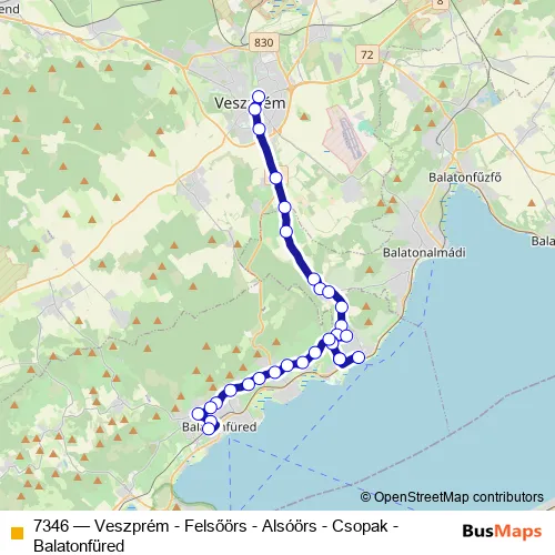 Bus 7346 - Veszprém - Felsőörs - Alsóörs - Csopak - Balatonfüred Schedule in Balatonfuered