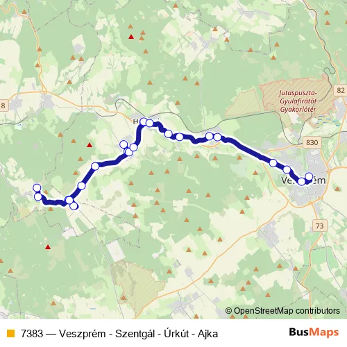 Bus 7383 - Veszprém - Szentgál - Úrkút - Ajka: Full Schedule in Veszprem