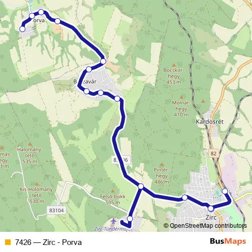 Click here to view the nearest 7426 - Zirc - Porva bus stop.