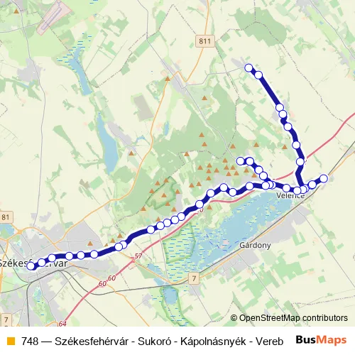 Bus 748 - Székesfehérvár - Sukoró - Kápolnásnyék - Vereb: Full Schedule in Szekesfehervar