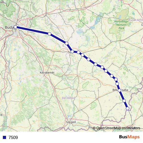 The first stop of the 7509 rail route is Lőkösháza and the last stop is Budapest-Keleti. 7509 is operational during everyday.
