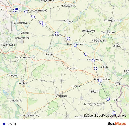 The first stop of the 7510 rail route is Szolnok and the last stop is Lőkösháza. 7510 is operational during everyday.