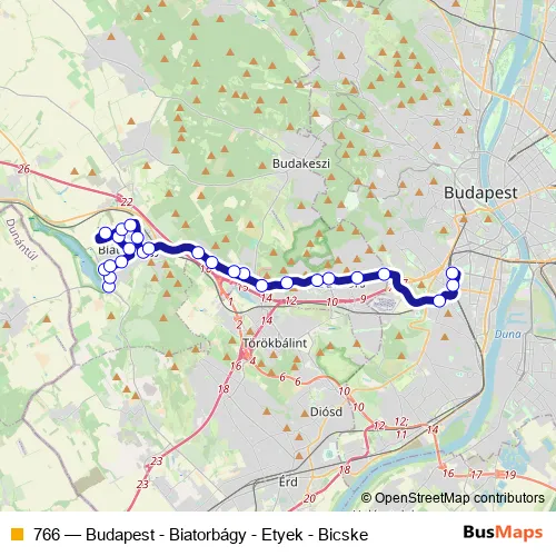 See why over 2 million users trust and consider busmaps.com as the best public transport website. busmaps gives you Budapest Buses suggested routes, real-time bus tracker, line route maps in Budapest, and helps to find the closest 766 bus stops near you. No internet available? Download an offline PDF map and bus schedule for the 766 bus to take on your trip.