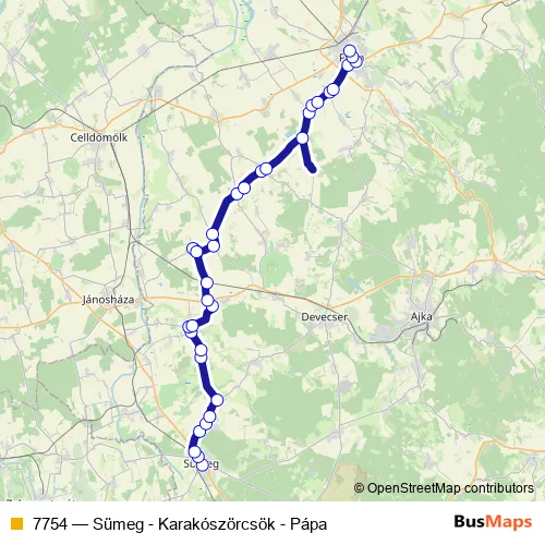 Csáky László utca - Jókai Mór utca - Somlai út - Pápai út - Kossuth utca - Pápai út - Dózsa György utca - Petőfi Sándor tér - Petőfi utca - Rákóczi Ferenc utca - Fő utca
