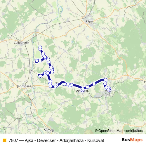 Bus 7807 - Ajka - Devecser - Adorjánháza - Külsővat Schedule in Devecser