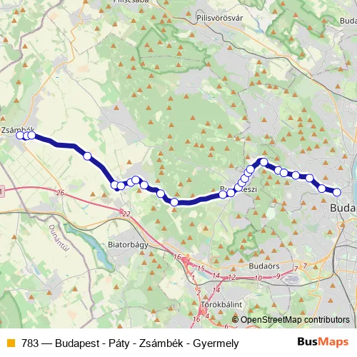 Click here to view the nearest 783 - Budapest - Páty - Zsámbék - Gyermely bus stop.