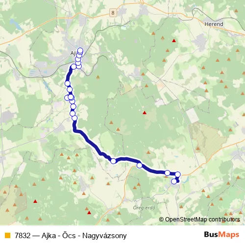 Click here to view the nearest 7832 - Ajka - Öcs - Nagyvázsony bus stop.