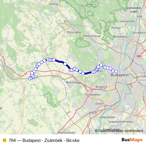 The first stop of the 784 bus route is Bicske, vasútállomás and the last stop is Budapest, Széll Kálmán tér. 784 (Budapest - Zsámbék - Bicske) is operational during everyday.