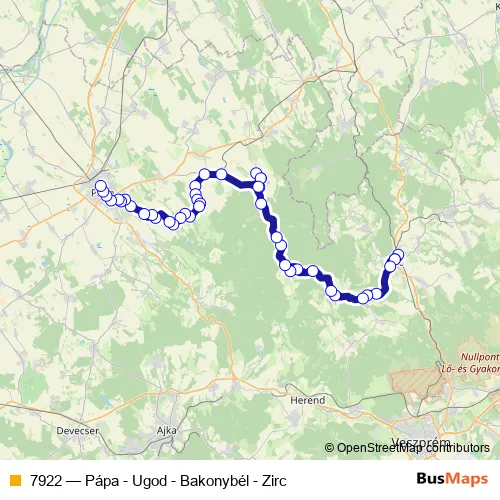Click here to view the nearest 7922 - Pápa - Ugod - Bakonybél - Zirc bus stop.