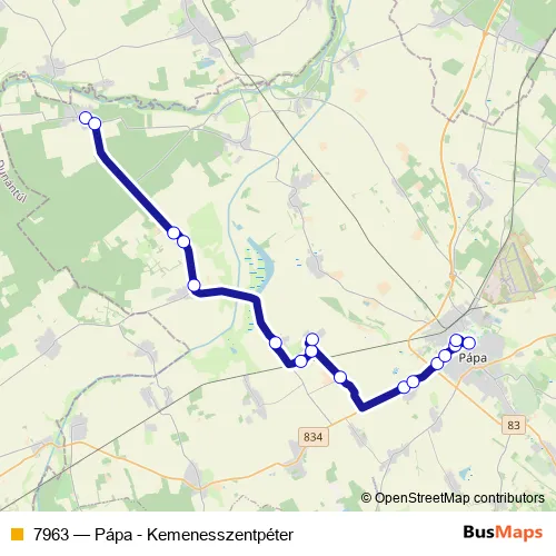 Outbound: Kemenesszentpéter, autóbusz-váróterem ➞ Pápa, autóbusz-állomás