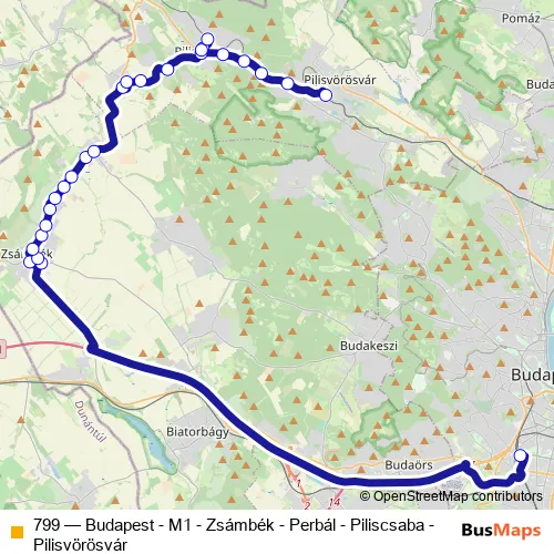 Click here to view the nearest 799 - Budapest - M1 - Zsámbék - Perbál - Piliscsaba - Pilisvörösvár bus stop.
