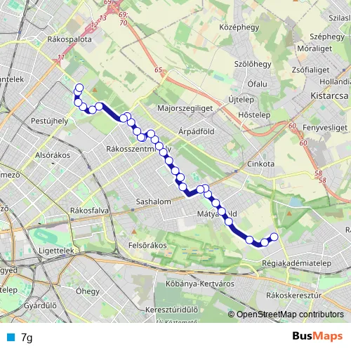 Bus 7g in Budapest: Stops & Timetable