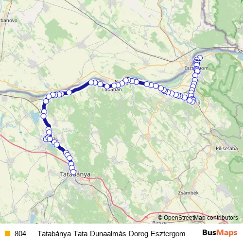 Bus 804 - Tatabánya-Tata-Dunaalmás-Dorog-Esztergom in Esztergom: Stops & Timetable