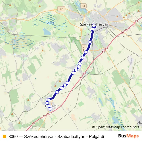 Bus 8060 - Székesfehérvár - Szabadbattyán - Polgárdi: Full Schedule in Polgardi