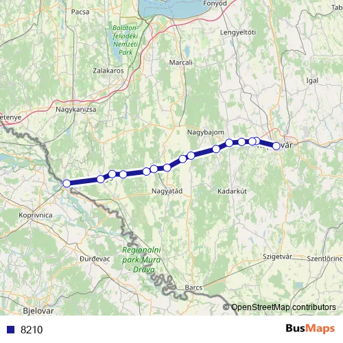 The first stop of the 8210 rail route is Kaposvár and the last stop is Gyékényes. 8210 is operational during everyday.
