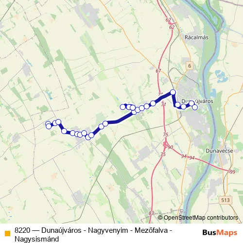 Bus 8220 - Dunaújváros - Nagyvenyim - Mezőfalva - Nagysismánd in Mezofalva: Stops & Timetable