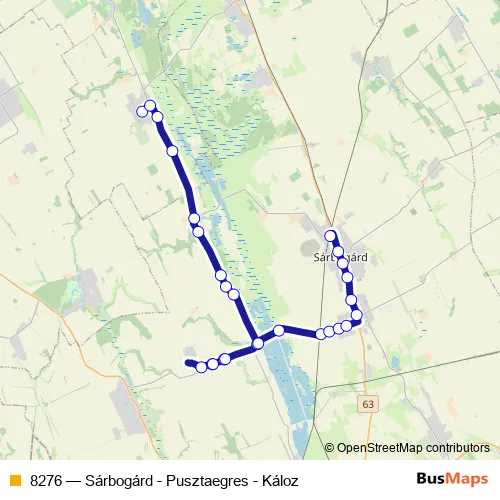 The first stop of the 8276 bus route is Káloz, Szent István tér and the last stop is Sárbogárd, vasútállomás. 8276 (Sárbogárd - Pusztaegres - Káloz) is operational during everyday.