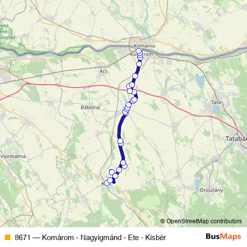 Click here to view the nearest 8671 - Komárom - Nagyigmánd - Ete - Kisbér bus stop.