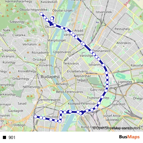 See why over 2 million users trust and consider busmaps.com as the best public transport website. busmaps gives you Budapest Buses suggested routes, real-time bus tracker, line route maps in Budapest, and helps to find the closest 901 bus stops near you. No internet available? Download an offline PDF map and bus schedule for the 901 bus to take on your trip.