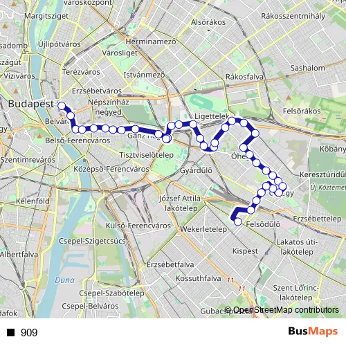 See why over 2 million users trust and consider busmaps.com as the best public transport website. busmaps gives you Budapest Buses suggested routes, real-time bus tracker, line route maps in Budapest, and helps to find the closest 909 bus stops near you. No internet available? Download an offline PDF map and bus schedule for the 909 bus to take on your trip.