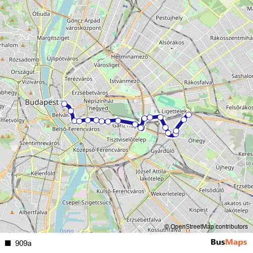See why over 2 million users trust and consider busmaps.com as the best public transport website. busmaps gives you Budapest Buses suggested routes, real-time bus tracker, line route maps in Budapest, and helps to find the closest 909a bus stops near you. No internet available? Download an offline PDF map and bus schedule for the 909a bus to take on your trip.