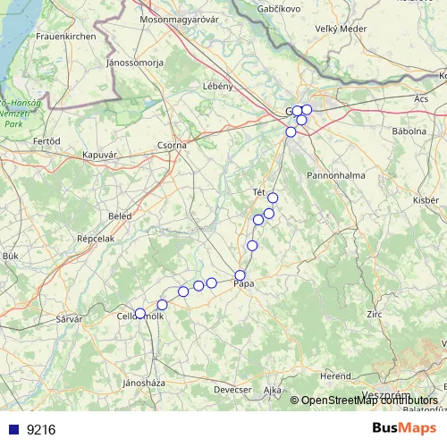 Eszperantó út - Tegez utca - Serfőződombi dűlő - Veres Péter utca - Széchenyi utca - Vasútsor utca - Vasút utca - Tompa Mihály utca - Munkácsy utca - Kossuth Lajos utca - Rákóczi utca