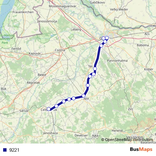 Rákóczi utca - Kossuth Lajos utca - Munkácsy utca - Tompa Mihály utca - Vasút utca - Vasútsor utca - Széchenyi utca - Veres Péter utca - Serfőződombi dűlő - Tegez utca - Eszperantó út
