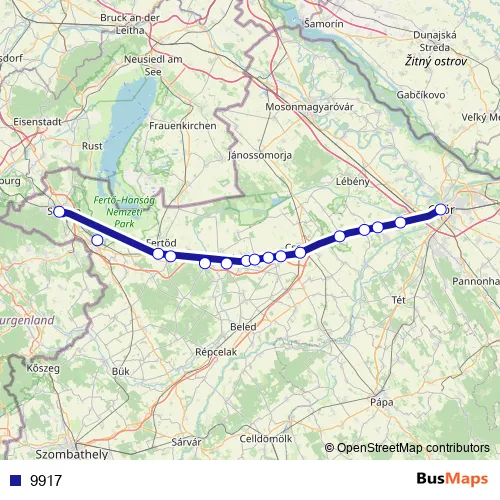 The first stop of the 9917 rail route is Sopron and the last stop is Győr. 9917 is operational during on weekdays.