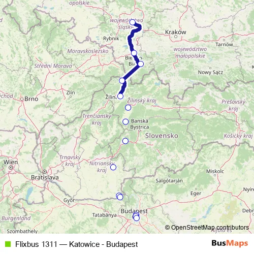 Click here to view the nearest Flixbus 1311 - Katowice - Budapest bus stop.