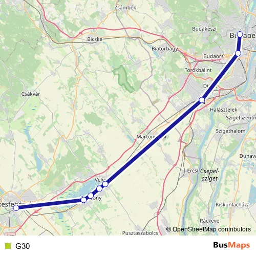 The first stop of the G30 rail route is Budapest-Déli and the last stop is Székesfehérvár. G30 is operational during on weekends.