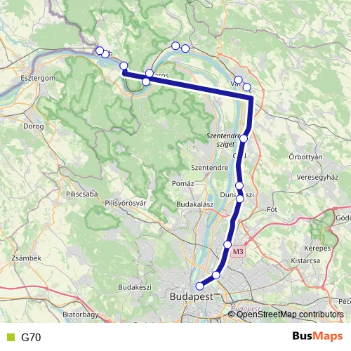 The first stop of the G70 rail route is Szob and the last stop is Budapest-Nyugati. G70 is operational during everyday.