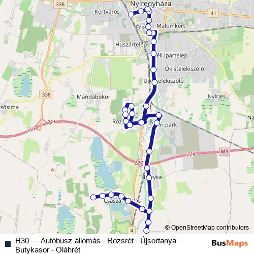 MÁV Személyszállítási Zrt. - Nyíregyháza H30 Autóbusz-állomás - Rozsrét - Újsortanya - Butykasor - Oláhrét Bus