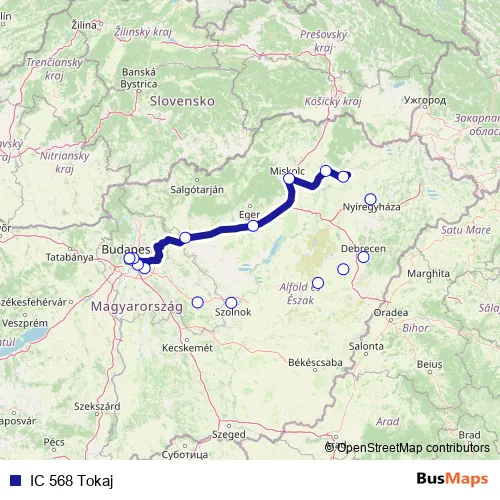 See why over 2 million users trust and consider busmaps.com as the best public transport website. busmaps gives you Budapest Rail Services suggested routes, real-time bus tracker, line route maps in Budapest, and helps to find the closest IC 568 Tokaj rail stops near you. No internet available? Download an offline PDF map and bus schedule for the IC 568 Tokaj rail to take on your trip.