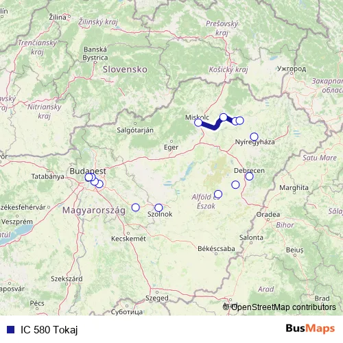 See why over 2 million users trust and consider busmaps.com as the best public transport website. busmaps gives you Budapest Rail Services suggested routes, real-time bus tracker, line route maps in Budapest, and helps to find the closest IC 580 Tokaj rail stops near you. No internet available? Download an offline PDF map and bus schedule for the IC 580 Tokaj rail to take on your trip.