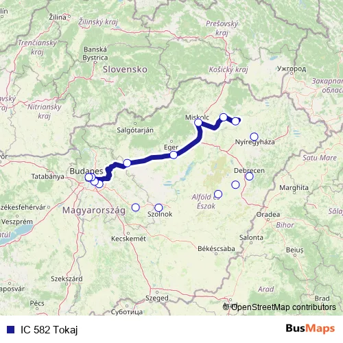 See why over 2 million users trust and consider busmaps.com as the best public transport website. busmaps gives you Budapest Rail Services suggested routes, real-time bus tracker, line route maps in Budapest, and helps to find the closest IC 582 Tokaj rail stops near you. No internet available? Download an offline PDF map and bus schedule for the IC 582 Tokaj rail to take on your trip.