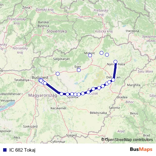 See why over 2 million users trust and consider busmaps.com as the best public transport website. busmaps gives you Budapest Rail Services suggested routes, real-time bus tracker, line route maps in Budapest, and helps to find the closest IC 682 Tokaj rail stops near you. No internet available? Download an offline PDF map and bus schedule for the IC 682 Tokaj rail to take on your trip.