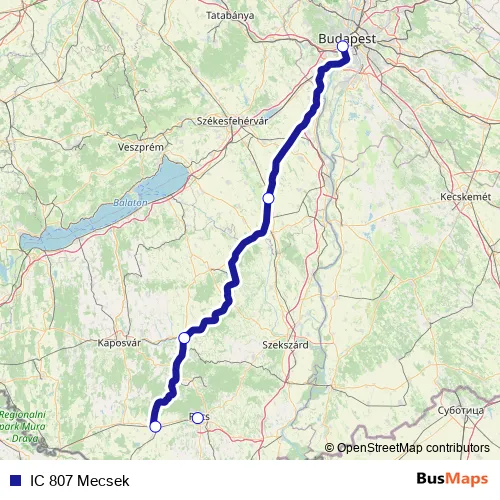 See why over 2 million users trust and consider busmaps.com as the best public transport website. busmaps gives you Pecs Rail Services suggested routes, real-time bus tracker, line route maps in Pecs, and helps to find the closest IC 807 Mecsek rail stops near you. No internet available? Download an offline PDF map and bus schedule for the IC 807 Mecsek rail to take on your trip.