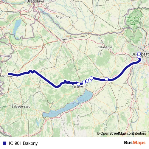 Additional information: IC 901 Bakony has 8 stops and the total trip duration for this route is approximately 75 minutes.