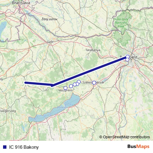 Additional information: IC 916 Bakony has 8 stops and the total trip duration for this route is approximately 75 minutes.
