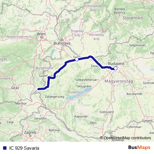 The first stop of the IC 929 Savaria rail route is Győr and the last stop is Budapest-Kelenföld. IC 929 Savaria (IC 929 Savaria) is operational during everyday.